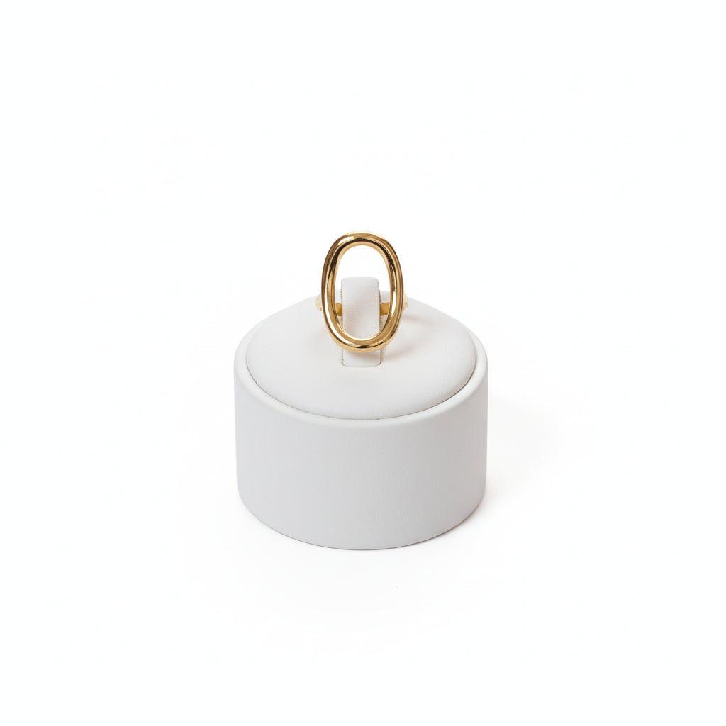 A sleek and contemporary gold ring with an open oval design, characterized by its smooth, rounded contours. This minimalist piece adds a touch of sophistication and modern elegance to any outfit, making it perfect for stacking or wearing alone as a statement accessory.