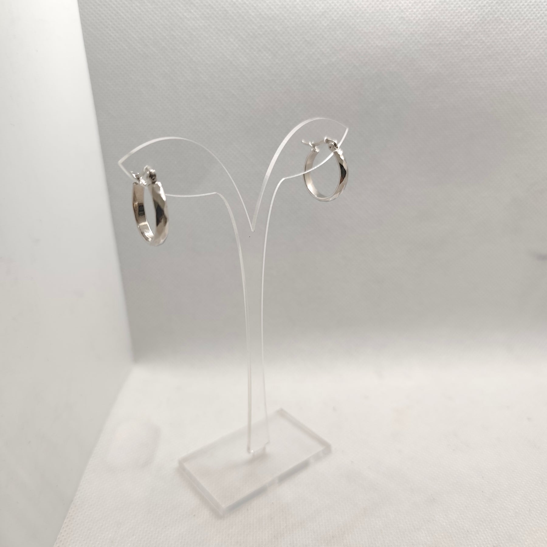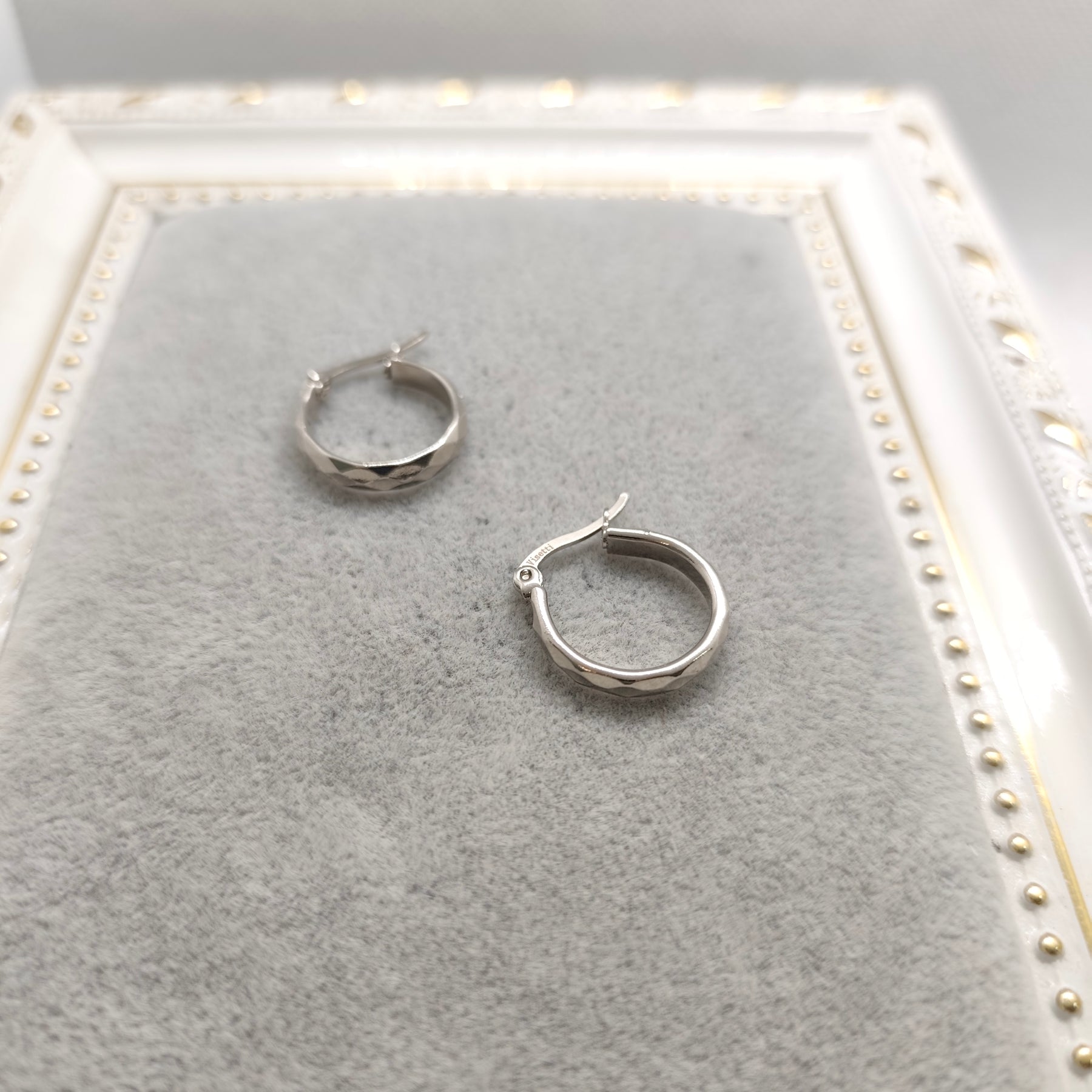 These are elegant hoop earrings with a sleek, polished finish in a silver tone. The hoops are small-sized, offering a timeless and versatile style that can complement various outfits.